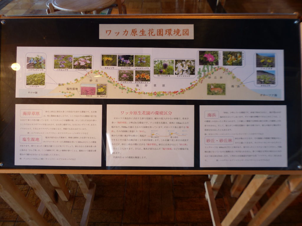 オホーツク海とサロマ湖との間の細長い砂嘴にあたり、時期(6月から8月とのこと)になれば、凄い原生の花園(ハマナス、エゾスカシユリ、センダイハギなど)に姿を変えると解説されていました