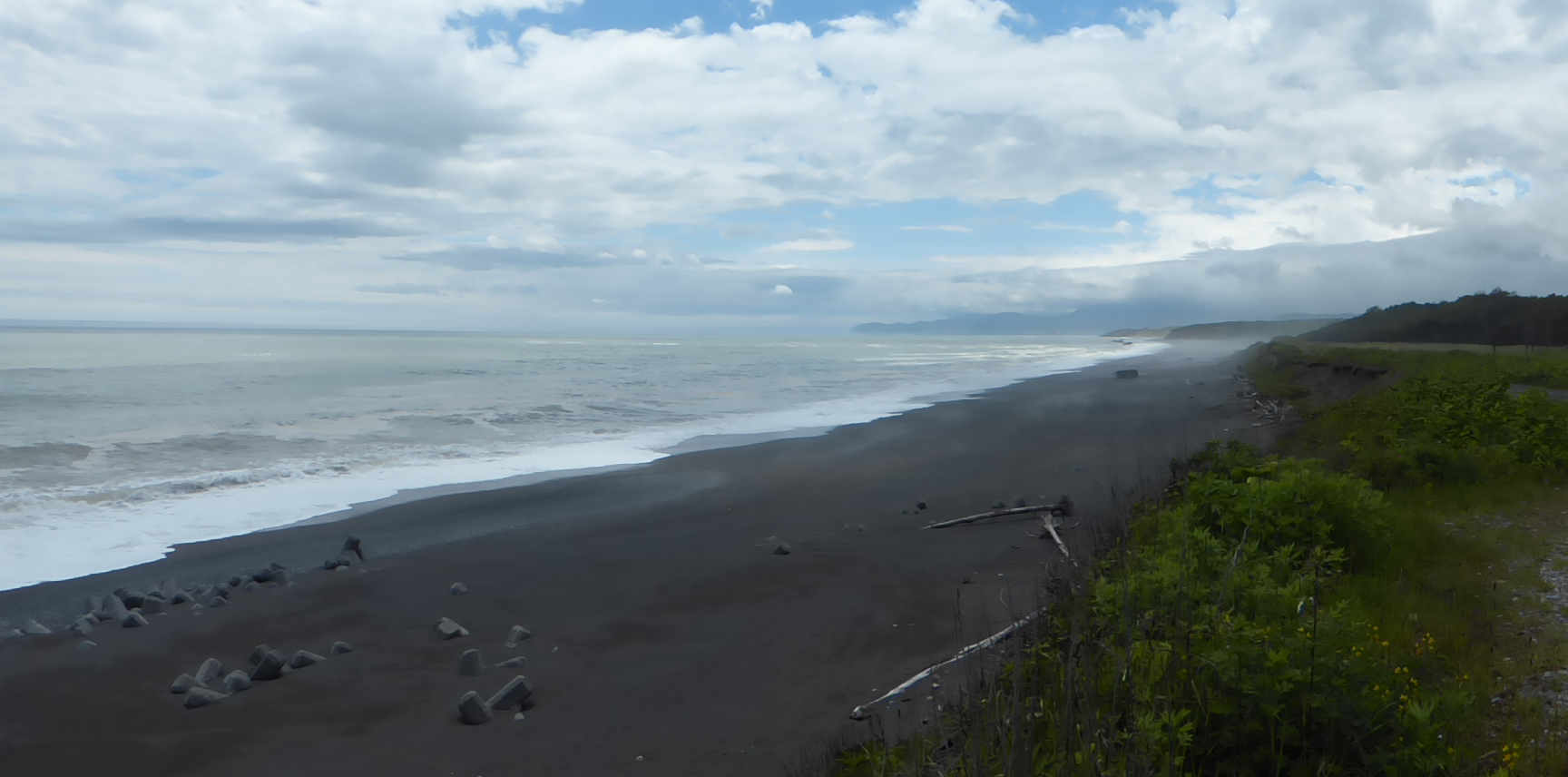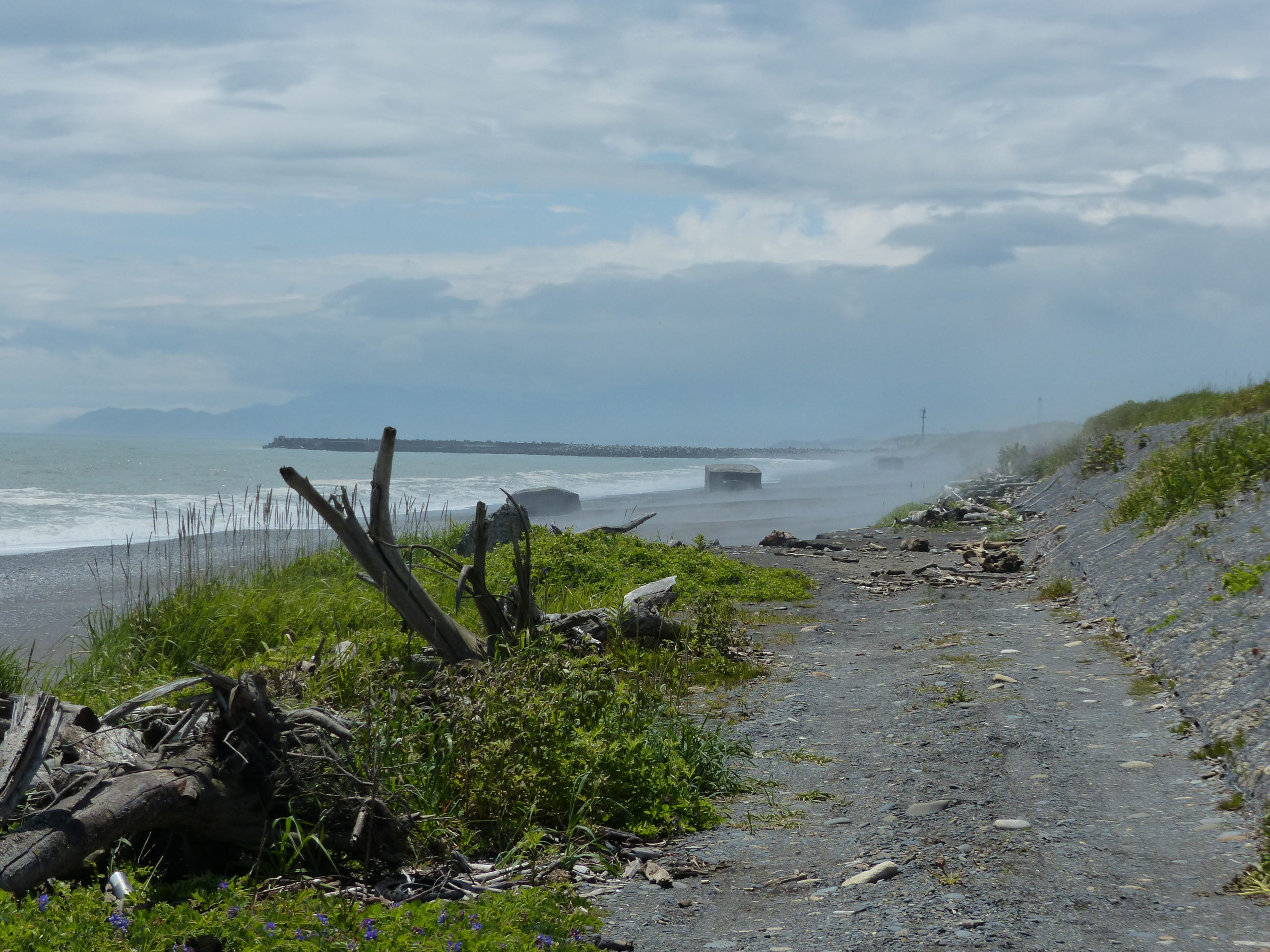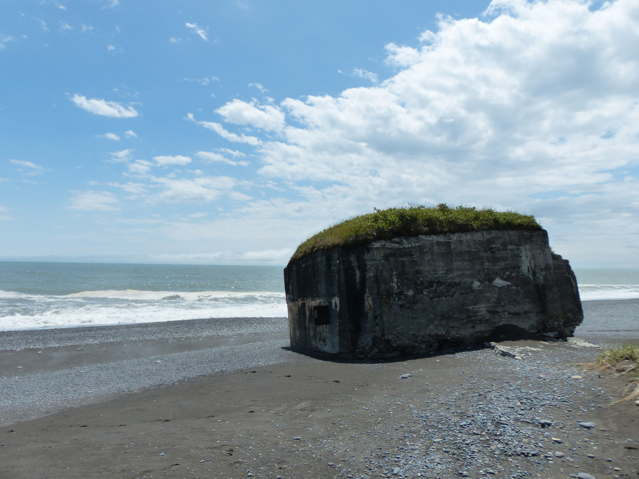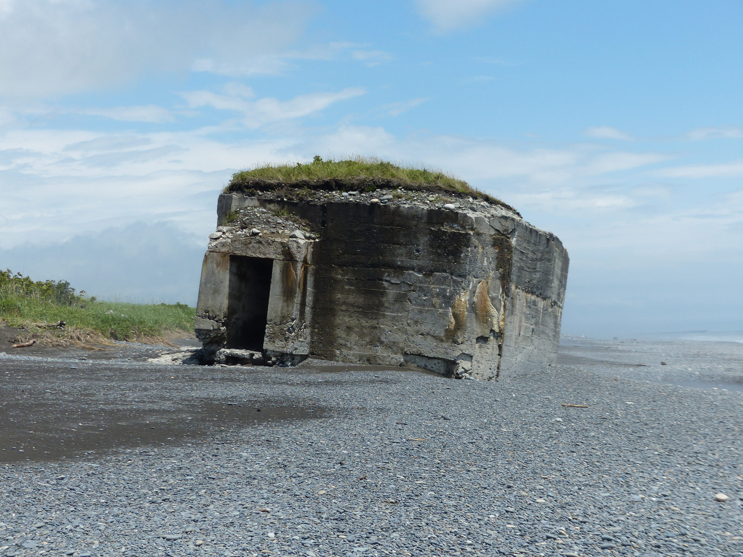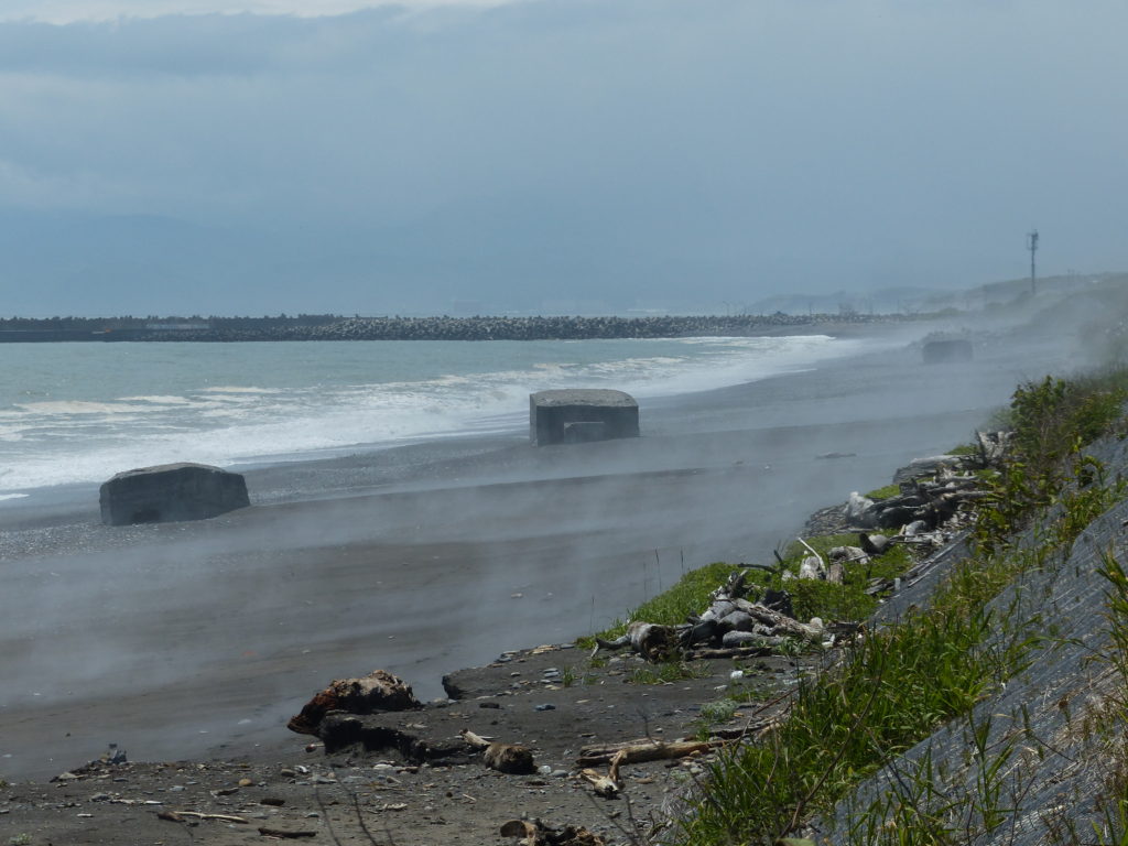 幹線道路から脇道にそれ 暫く砂利道を走ると 旭浜海岸に出る 流れ着いた流木と芥の他は 砂を洗う波の音だけだ 6月の心地よい日差しだが 人の気配はない 寄せては返す波がトーチカの砂を浚っていく このトーチカも主たちの記憶と共に いつか砂の中に消えゆくのだろう